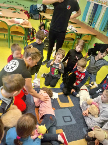 Pierwszaki ćwiczą pierwszą pomoc